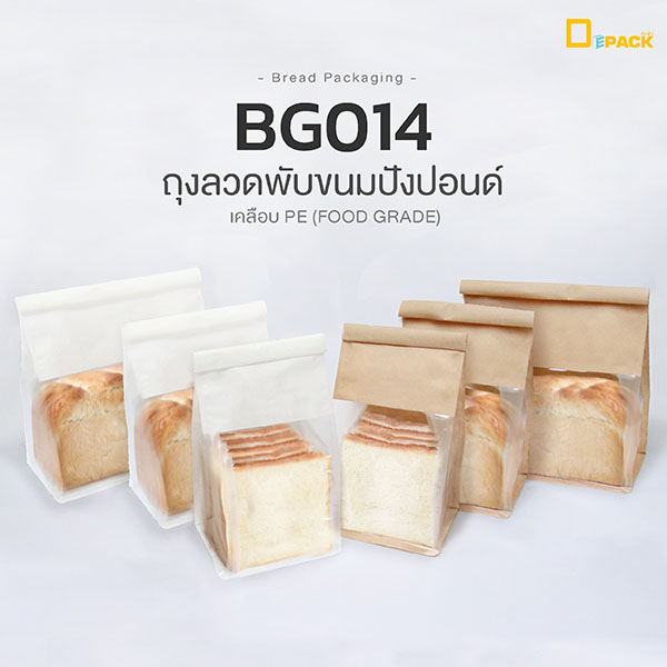 BG014 ถุงลวดพับขนมปังปอนด์(แพ็คละ 50 ใบ)/ถุงคุกกี้ ถุงขนมปังแผ่น ขนมปังโทส ถุงเบเกอรี่ ถุงกระดาษฟู้ดเกรด/depack